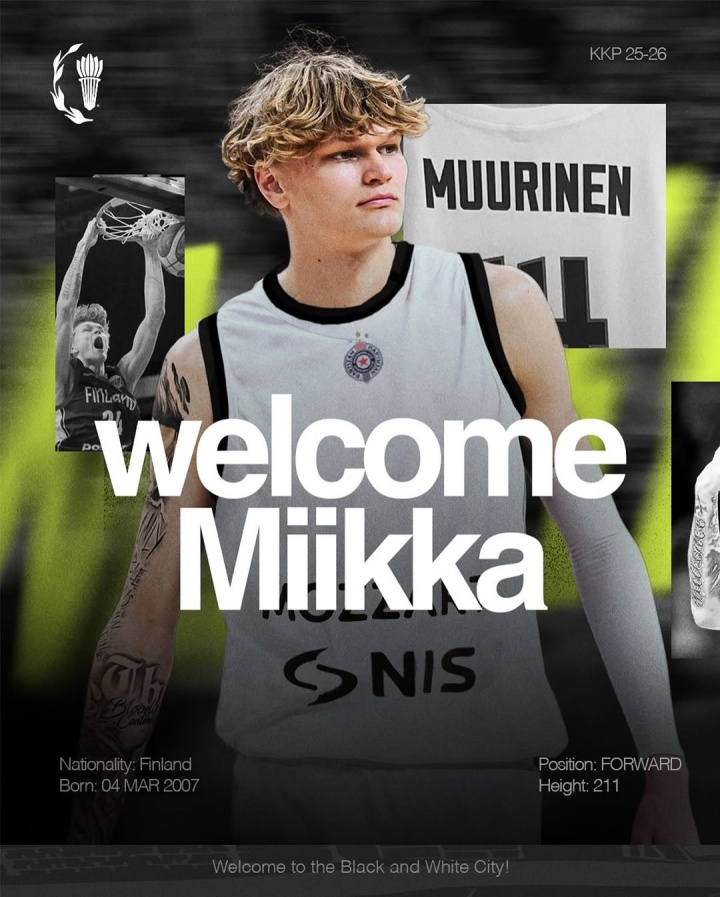 据欧媒BasketNews报道,穆里宁与游击队签下的是一份为期三年的合同。穆里宁明年3月将年满19岁,新赛季征战职业联赛后,将有资格参加2026年NBA选秀。