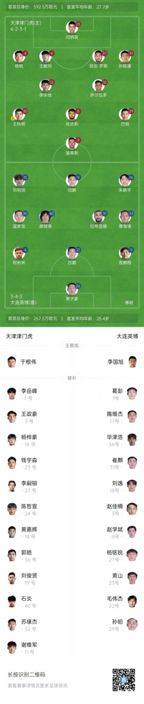 08月16日讯 北京时间今日18点30,中超第21轮,天津津门虎vs大连英博,赛前首发阵容出炉。