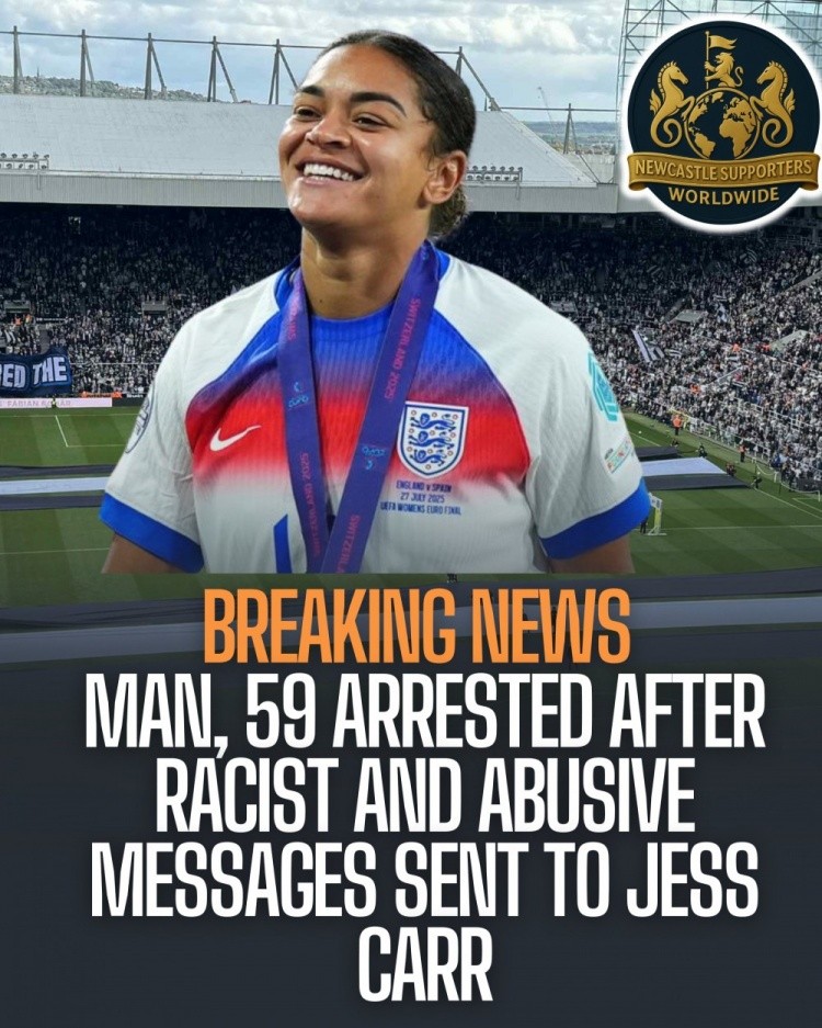 8月28日讯 镜报报道,一名59岁男子因涉嫌在今夏女子欧洲锦标赛期间向英格兰女足球员杰西-卡特发送恶意信息而被捕。