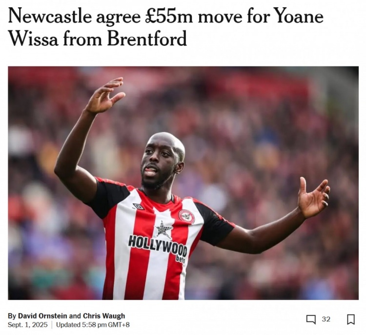 9月1日讯 TA记者大卫-奥恩斯坦报道,纽卡与布伦特福德就维萨的转会达成口头协议。