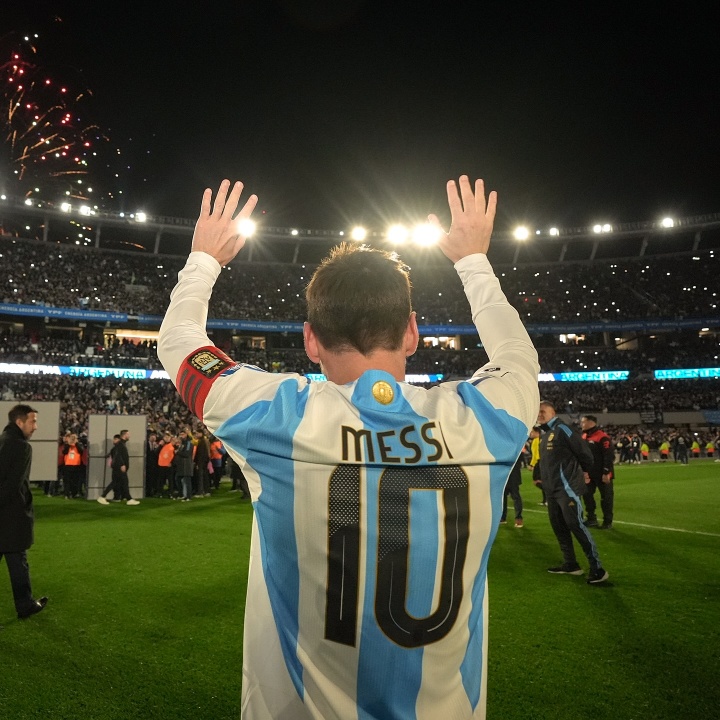 09月05日讯 世预赛南美区第17轮,阿根廷3-0完胜委内瑞拉,梅西梅开二度。赛后梅西发布社媒,纪念了自己在阿根廷国家队的最后一场本土主场比赛。